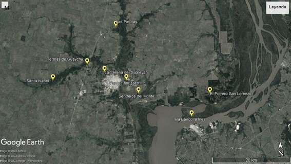 • Senderos del Monte: Reserva natural privada. Ubicada a 6 km al este de la ciudad de Gualeguaychú, sobre la ruta pavimentada a Ñandubaysal en el km 2,4. Departamento Gualeguaychú (Distrito Costa Uruguay Norte). Posee una superficie de 25 ha.