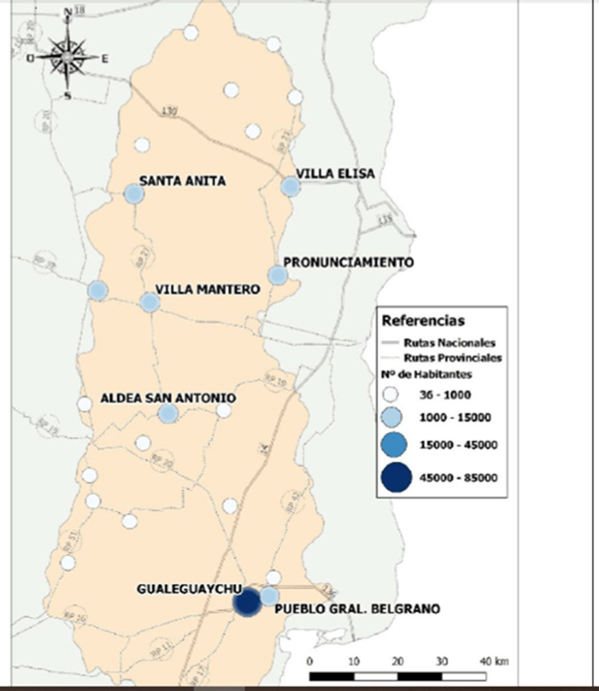 - Sur: Río Uruguay, río Gualeguaychú, Arroyo del Cura y Cañada de Manantiales.