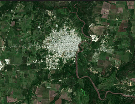 Sobre este río se encuentran numerosas playas y balnearios, distinguibles por la tonalidad clara de su arena, rodeada de una frondosa vegetación visible en color verde oscuro. En verde más claro y forma regular, se identifican los lotes destinados a actividades agrícolas. La isla de mayor superficie que se observa en el curso del río Gualeguaychú, es la isla Libertad.